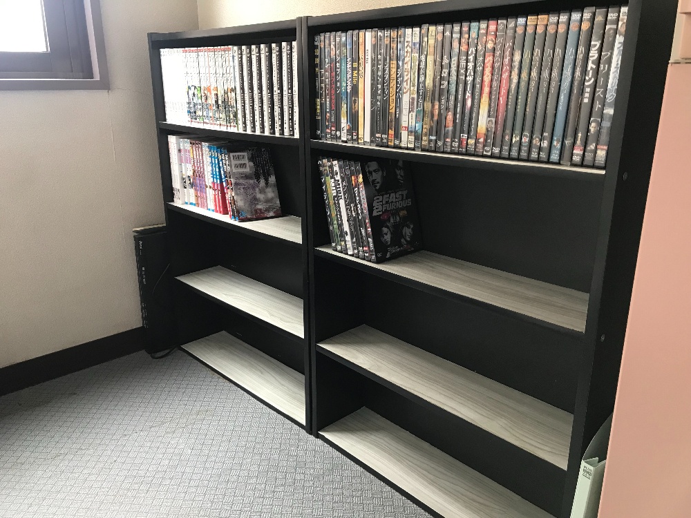ご入居者様であれば、どなたでも無料でご利用いただけます。漫画やDVDなど、様々な作品をご用意しておりますので、ぜひお楽しみください。